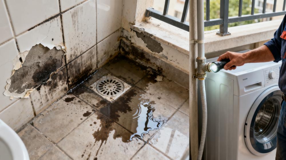 一旦出现潮印、渗水,别盲目补救,先找准漏点:墙面潮印多是瓷砖缝隙密封不严,尤其卫生间淋浴区墙面长期沾水,是漏点重灾区;地面渗水别只看表面,大概率是装修时接口没封好;阳台要重点检查洗衣机水管,接口松动容易积水流进地板下,时间久了就会渗到楼下。